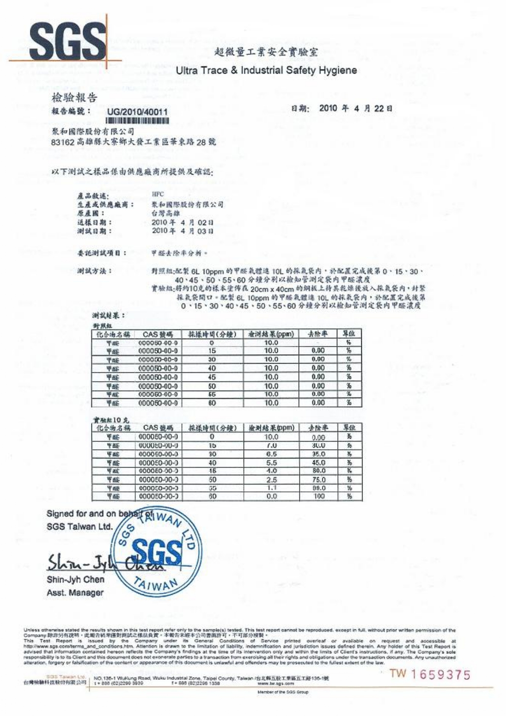 SGS實驗證實60分鐘去甲醛率達99.9%以上,快速有效。甲醛分子能有效被分解,不會造成二度污染。