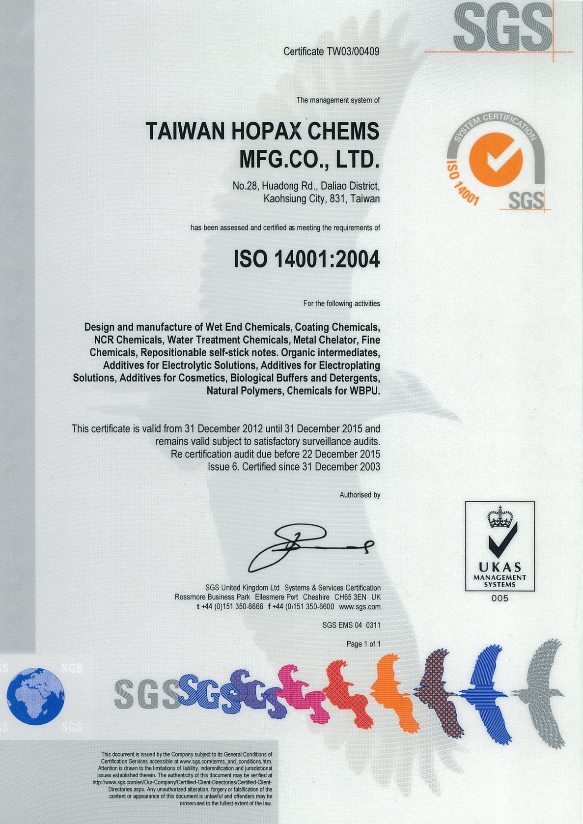 ISO 14001是建立並保持環境管理系統具體要求的重要管理系統標準。ISO 14001在環境政策中有三個基本的要求,它們是:防止污染、遵守法律法規、持續改進環境管理系統。將環境管理置於企業營運的核心,使其能夠達到環保要求、降低環境風險,並提昇企業形象和環境績效。