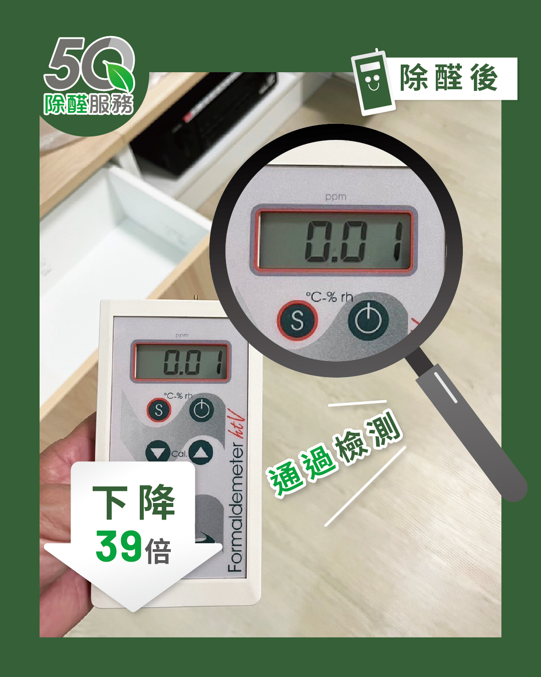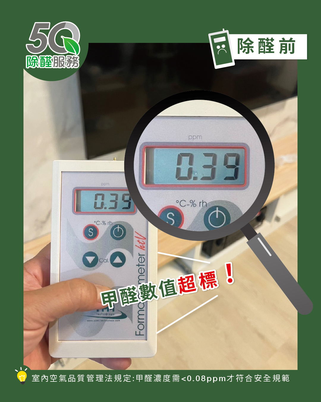 現場甲醛濃度從 0.39ppm → 0.01ppm