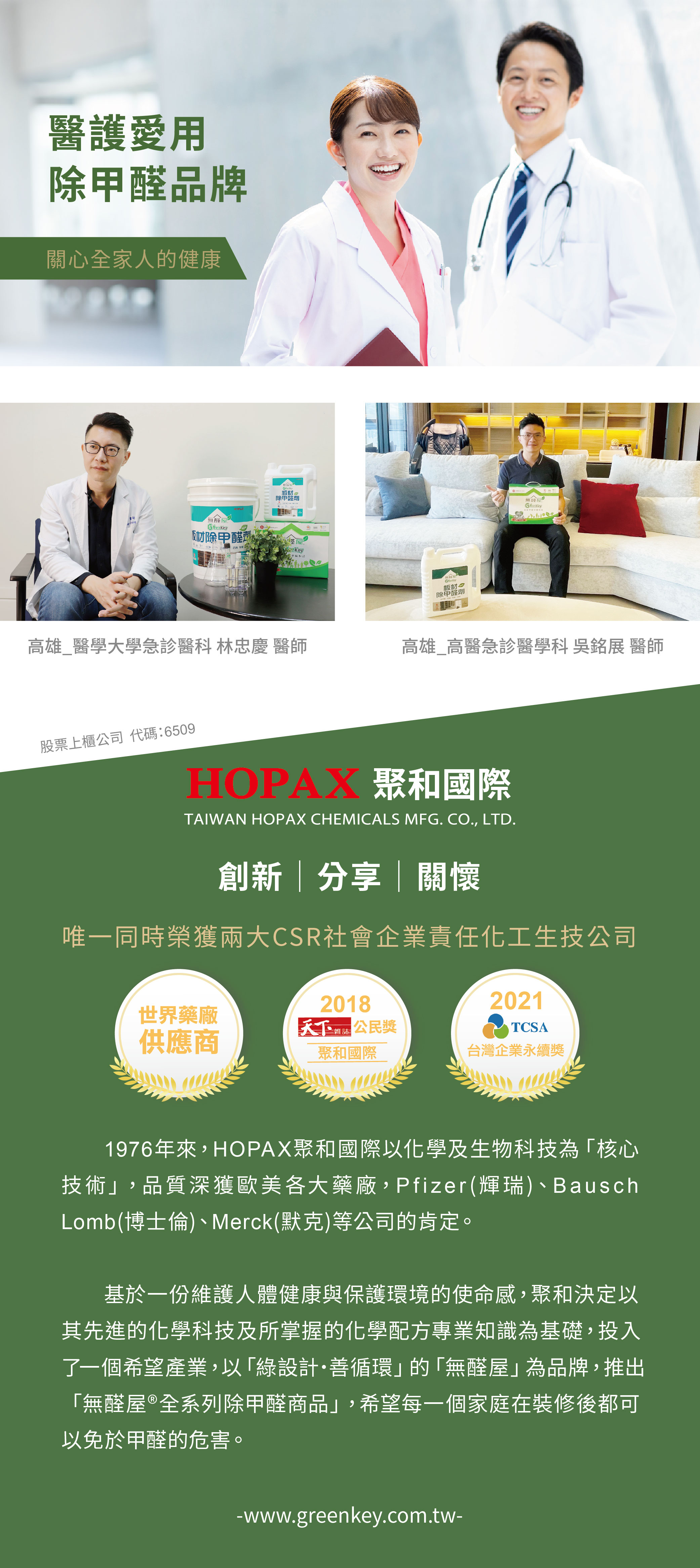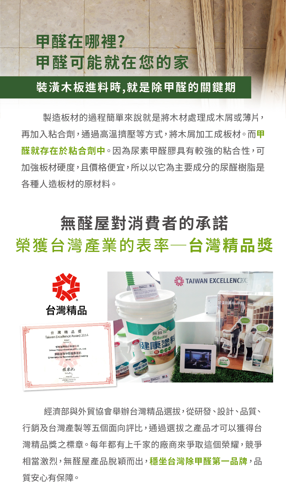 唯一連續兩屆榮獲台灣精品獎的除甲醛品牌。40年上櫃公司生產製造