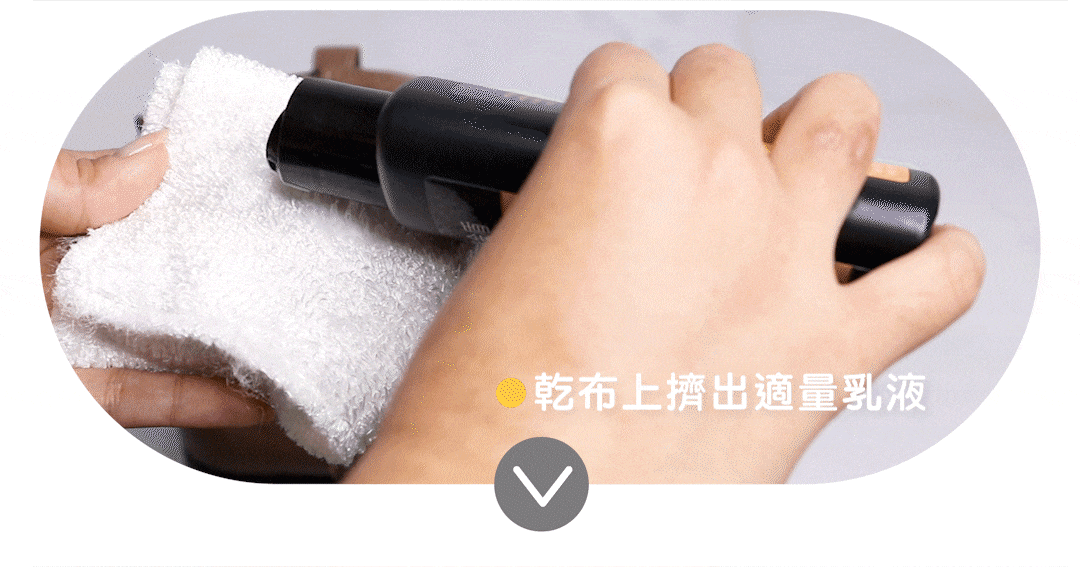 ►使用方法:使用前先用乾淨的棉布清潔皮件表面髒污,再將保養乳倒在乾布上,以打圈的方式均勻推抹,靜置乾燥3分鐘讓皮革吸收後即可。